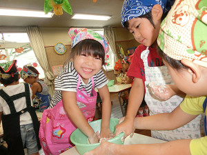 七夕会やおもちつきに地域の方をお呼びしたり、小学校に訪問に行ったりと地域の大人や子どもとの関わりを大切にし、異年齢との交流にも力を入れています。