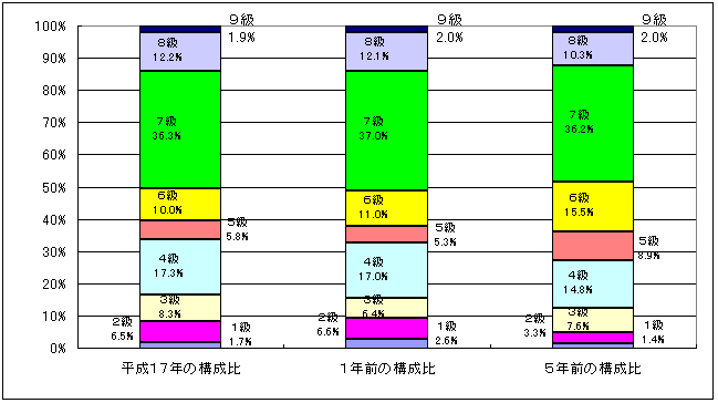 | 平成17年4月1日 | 平成22年3月31日 | 76人の純減 |
